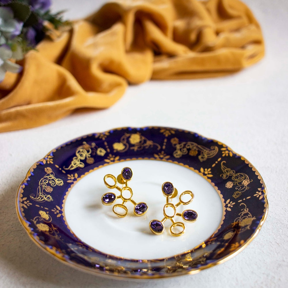 Material: 18 karat gold plated on brass, studded with oval shaped crystals